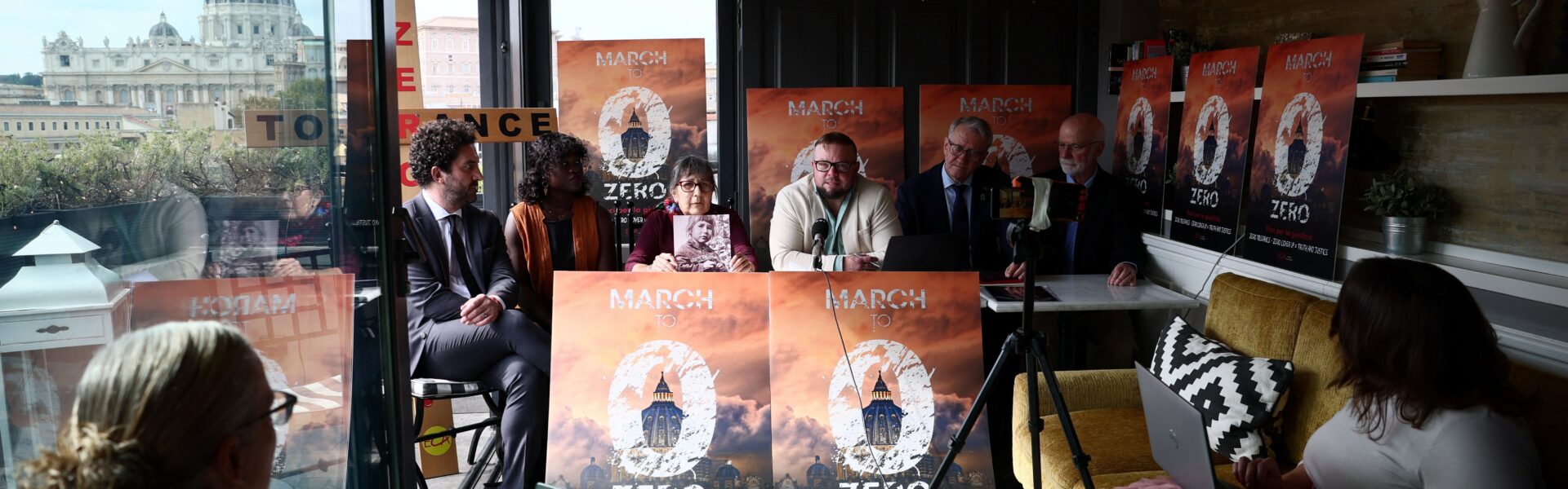 Membros da ONG Ending Clergy Abuse, que dá assistência a vítimas de abusos sexuais cometidos por membros do alto clero da Igreja Católica, a, em 20 de outubro de 2025. — Foto: Guglielmo Mangiapane/ Reuters