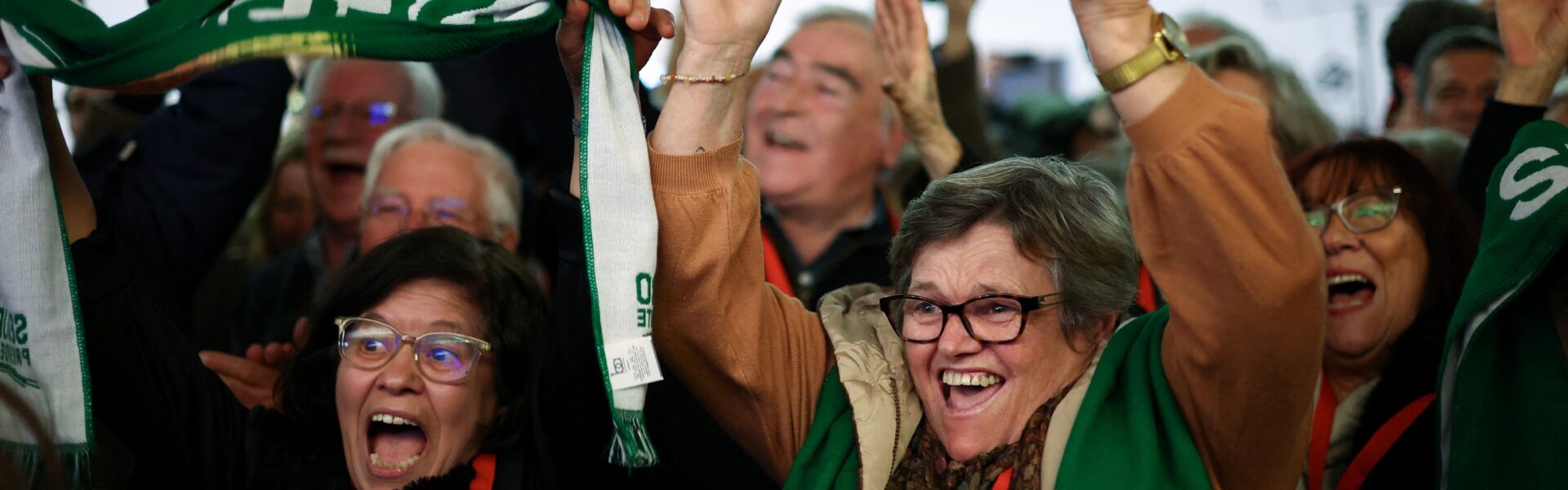 Apoiantes do candidato presidencial e socialista moderado António José Seguro reagem aos resultados das sondagens no dia das eleições presidenciais — Foto: REUTERS/Pedro Nunes