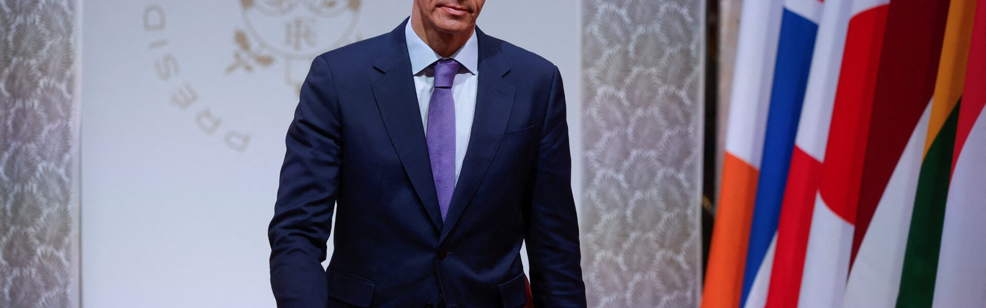 O primeiro-ministro espanhol, Pedro Sánchez, chega para a cúpula da Coligação dos Dispostos no Palácio do Eliseu, em Paris — Foto: YOAN VALAT/Pool via REUTERS
