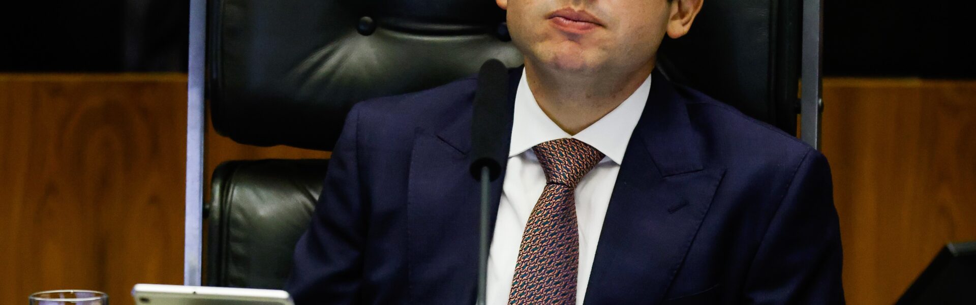 O presidente da Câmara dos Deputados, Hugo Motta (Republicanos-PB), durante a ordem do dia da sessão plenária da quarta-feira, 25 de junho de 2025, — Foto: Wilton Junior/Estadão Conteúdo