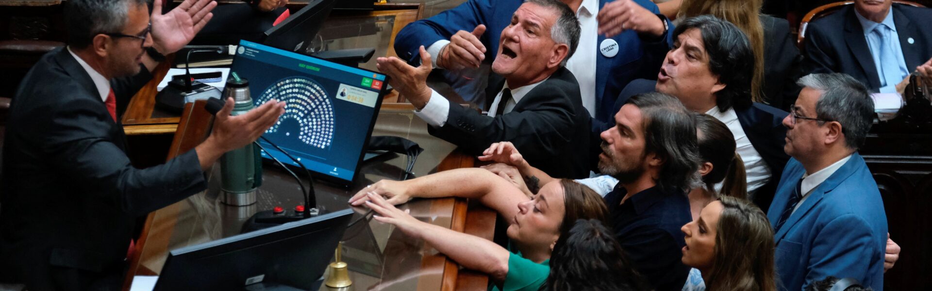 Parlamentares da oposição discutem com o presidente da Câmara dos Deputados da Argentina — Foto: REUTERS/Alessia Maccioni