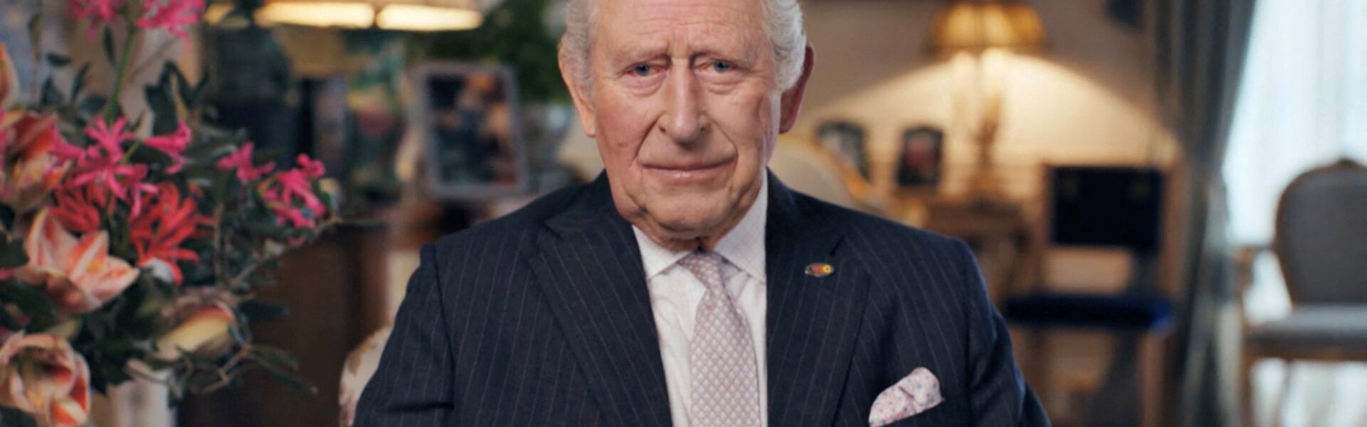 Rei Charles III em pronunciamento na TV — Foto: Tommy Forbes/Bango Studios/PA Wire/Divulgação via REUTERS