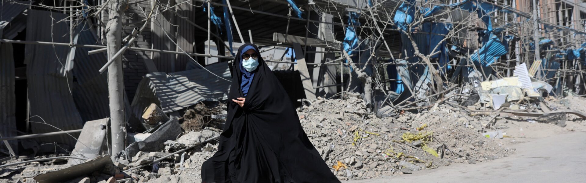 Mulher caminha por rua após ataque, em meio ao conflito das duas nações com o Irã, em Teerã — Foto: Majid Asgaripour/WANA via Reuters
