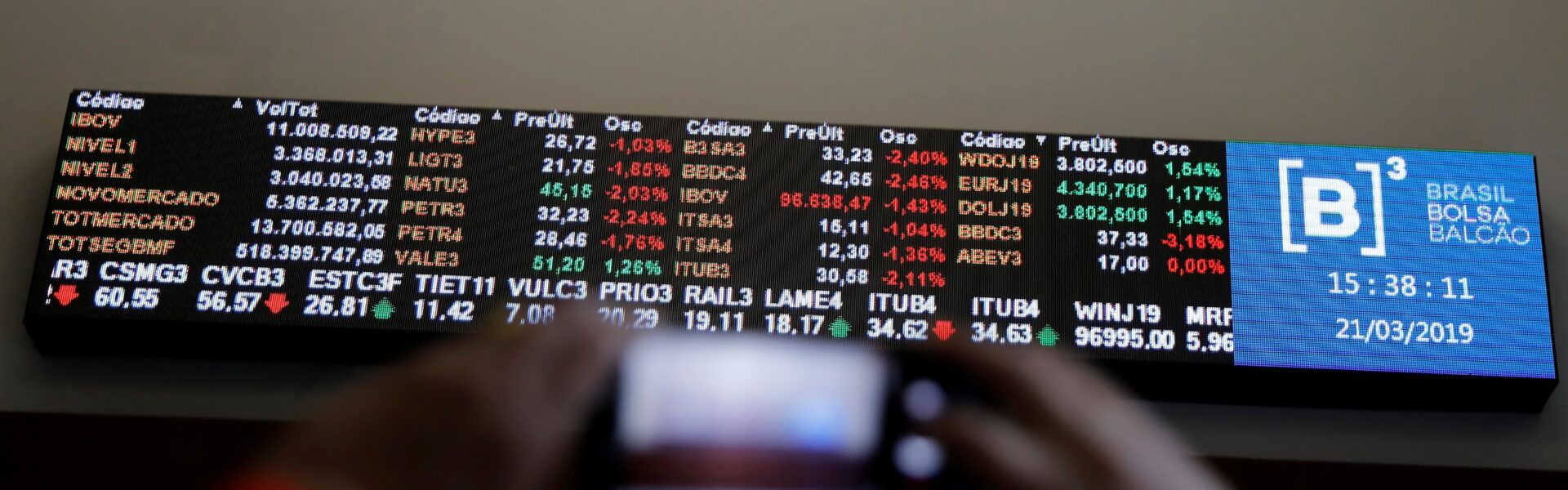 Painel na sede da B3, em São Paulo, Ibovespa, bolsa, Bovespa — Foto: Nacho Doce/Reuters