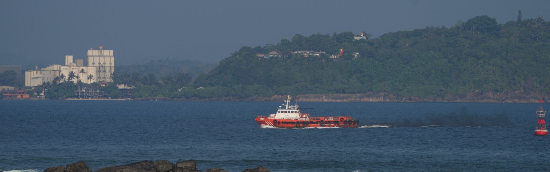 Uma embarcação navega ao largo da costa de Galle após um ataque de submarino contra um navio iraniano perto do Sri Lanka. — Foto: Thilina Kaluthotage/Reuters
