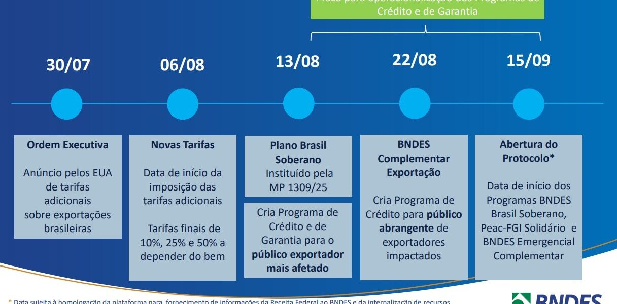 Além da linha de crédito de R$ 30 bilhões, o governo também anunciou outras medidas de suporte às empresas afetadas pela sobretaxa de 50% em suas vendas externas aos Estados Unidos. São elas: