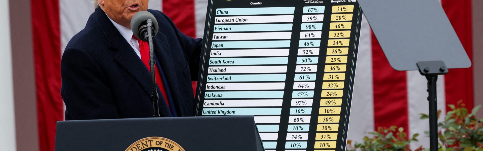 As tarifas médias subiram de 2,4% para 9,6%, o maior nível em 80 anos. Ainda assim, o impacto total é limitado porque boa parte das importações segue isenta — cerca de 57% entram no país sem tarifas, graças a acordos comerciais e exceções para produtos como energia e eletrônicos.
