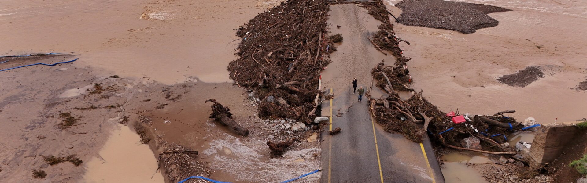 A estrutura foi instalada após outra tempestade, chamada Daniel, destruir a ponte principal em 2023 — evento considerado o pior já registrado na Grécia desde 1930, que deixou 15 mortos no país antes de atingir a Líbia, onde mais de 2.500 pessoas morreram.