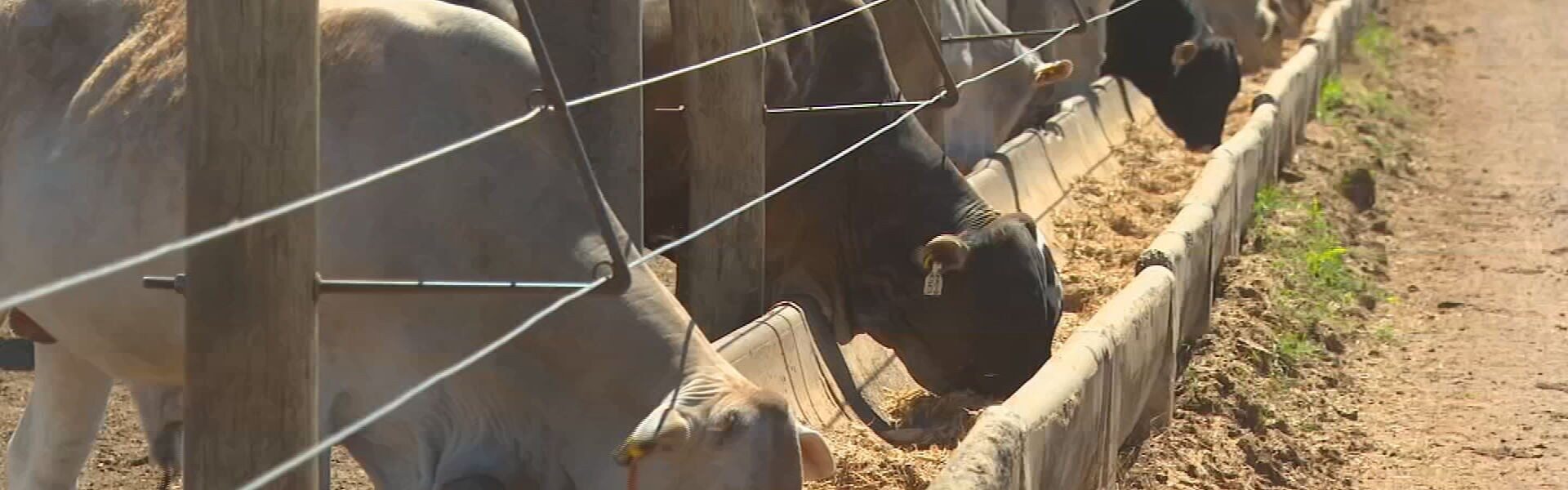 A preocupação também é grande em áreas de confinamento. Este fica em Presidente Bernardes (SP). Aqui, os para-raios garantem um pouco mais de tranquilidade.