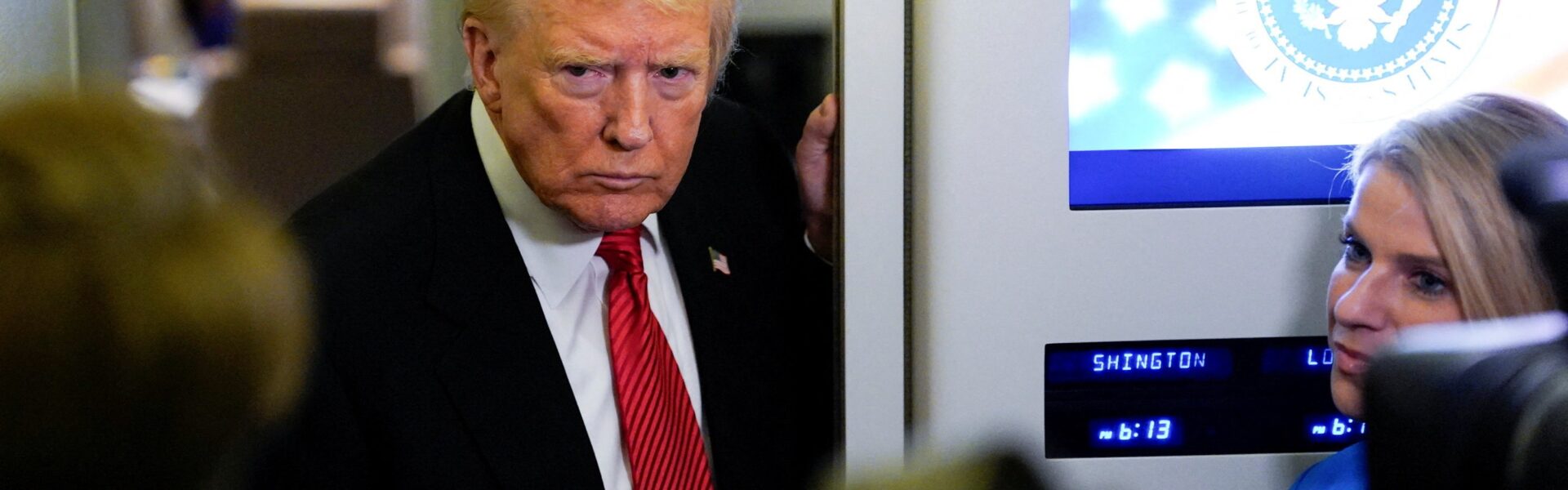 O presidente Donald Trump fala com a imprensa a bordo do Air Force One em 2 de novembro de 2025 — Foto: REUTERS/Elizabeth Frantz