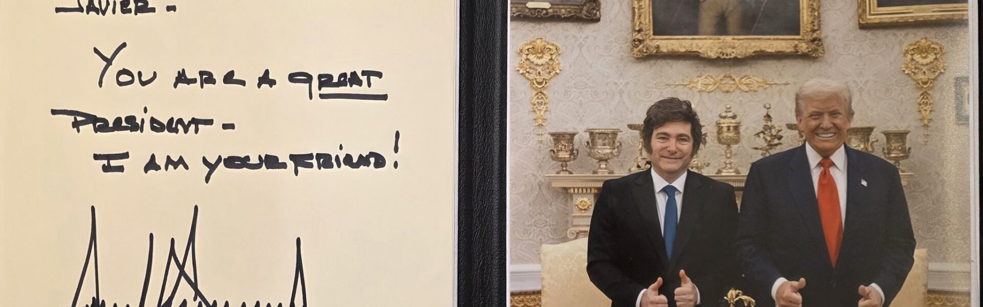 Na rede social X, horas após o encontro, Milei postou uma foto dos dois posando juntos e sorridentes no Salão Oval e um bilhete assinado por Trump que dizia: