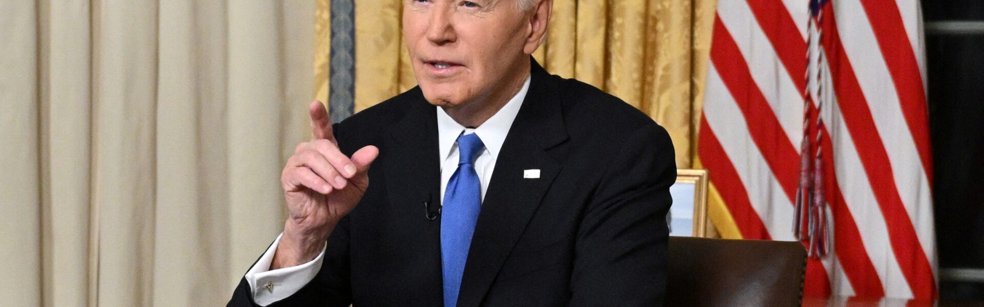 Presidente Joe Biden faz discurso de despedida na Casa Branca, em 15 de janeiro de 2025 — Foto: Mandel Ngan/Pool via Reuters