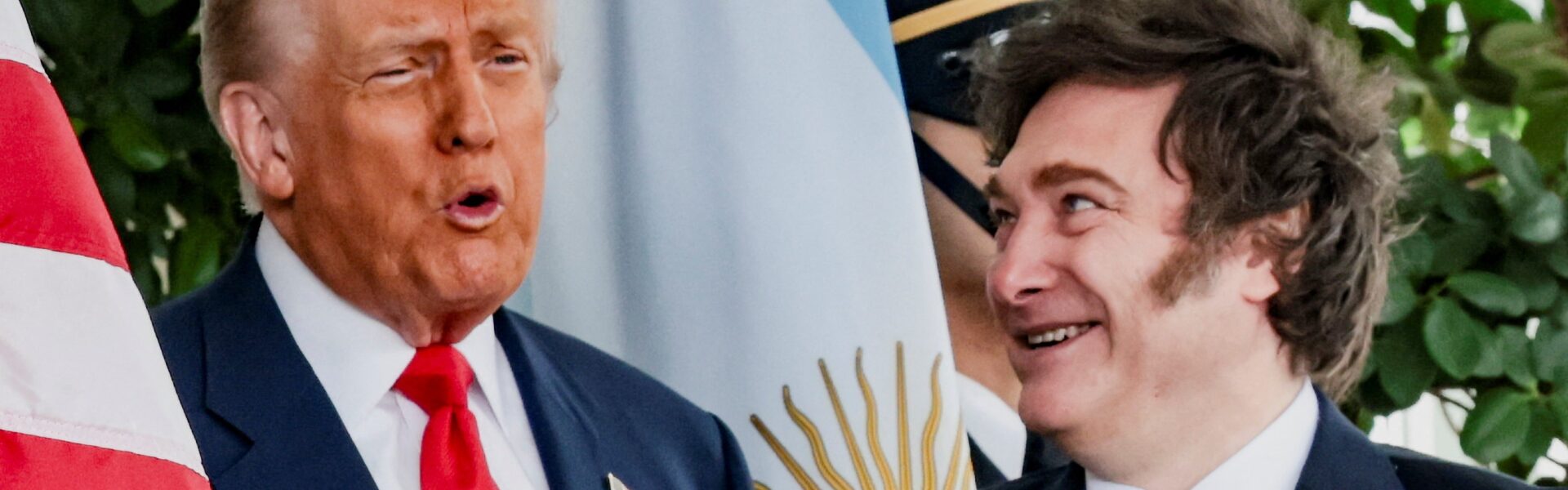 Trump recebe Milei na Casa Branca, em outubro de 2025 — Foto: Jonathan Ernst/Reuters