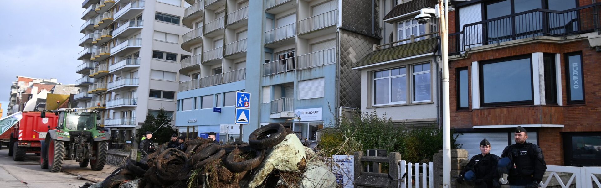 Lixo deixado por agricultores franceses em frente à casa de praia de Emmanuel Macron em Le Toquet, na França, em 19 de dezembro de 2025 — Foto: BERNARD BARRON / AFP