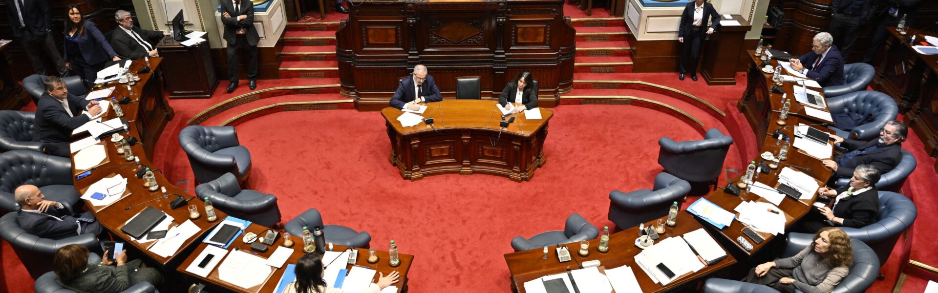 Senadores do Uruguai debatem projeto de lei que legaliza a eutanásia em 15 de outubro de 2025. — Foto: Santiago Mazzarovich/AFP