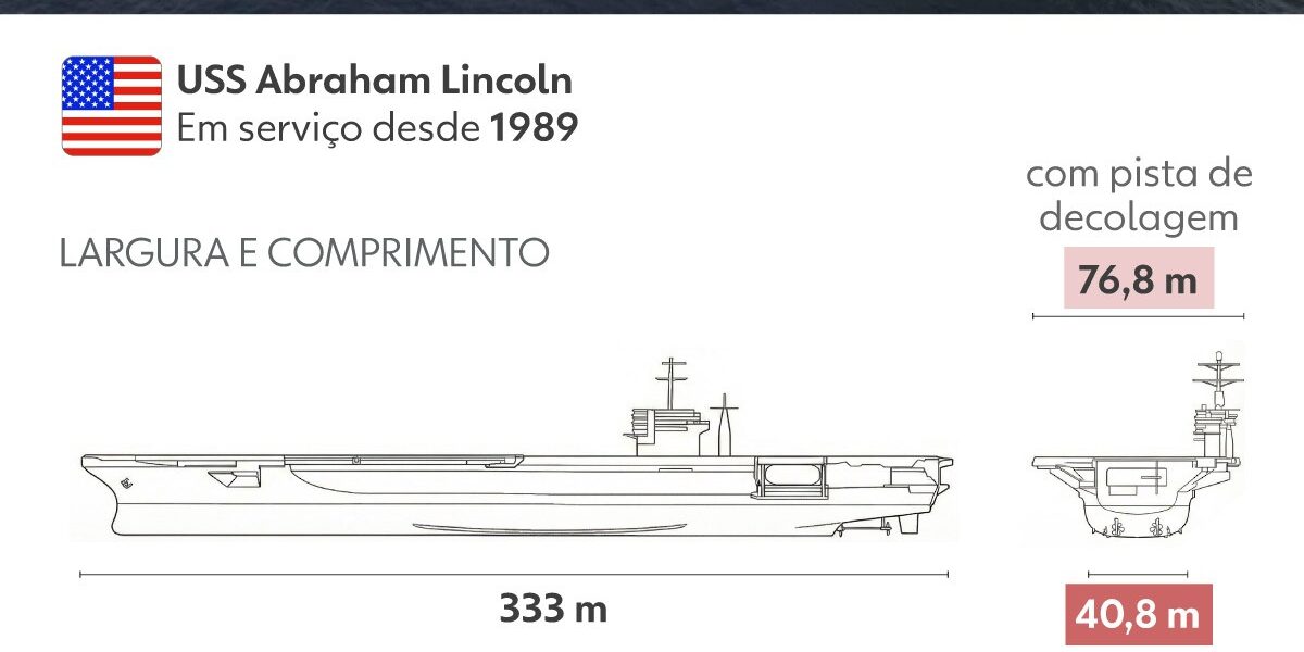 - Segundo a Marinha, o USS Abraham Lincoln é um “aeroporto flutuante” e pode lançar até quatro aviões por minuto.