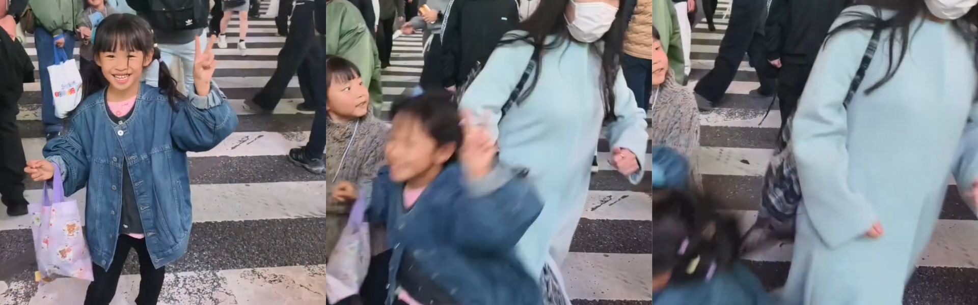 A cena foi registrada no famoso Cruzamento de Shibuya, um dos pontos turísticos mais conhecidos da capital japonesa. A mãe filmava a filha no local quando uma mulher passa e a empurra.
