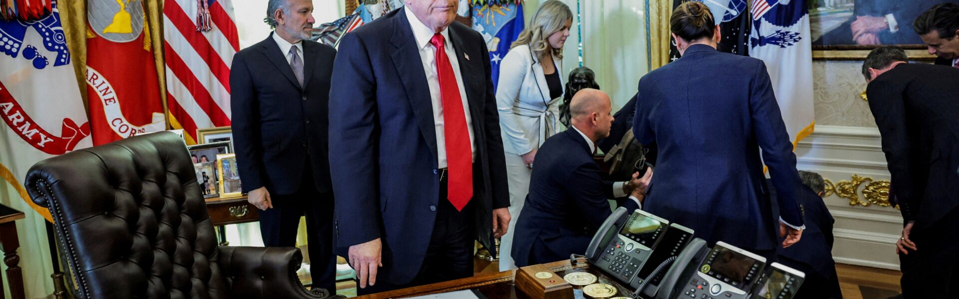 O evento foi retomado momentos depois. A porta-voz da Casa Branca, Karoline Leavitt, afirmou que o homem está bem, mas não divulgou outros detalhes sobre o ocorrido.
