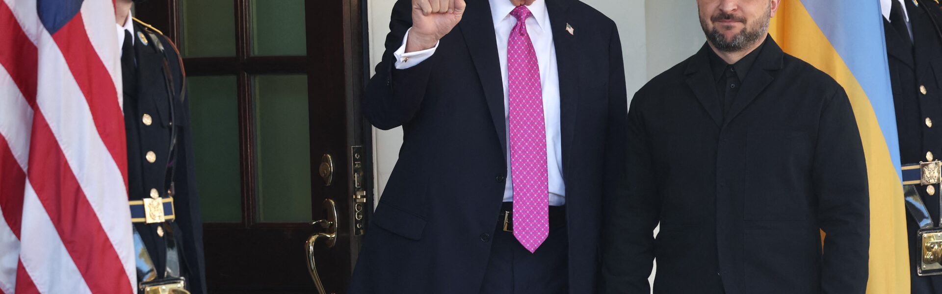 Presidente dos EUA, Donald Trump, recebe o ucraniano Volodymyr Zelensky na Casa Branca, em 17 de outubro de 2025 — Foto: Win McNamee/Getty Images/AFP