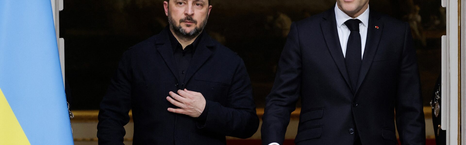 O presidente da Ucrânia, Volodymyr Zelensky e o presidente da França, Emmanuel Macron, em Paris — Foto: LUDOVIC MARIN/Pool via REUTERS